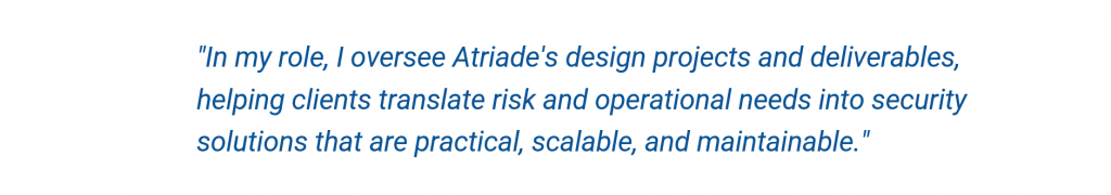 Security Operations – Atriade https://atriade.com Experts in Physical Security Consultation Tue, 03 Mar 2026 08:32:07 +0000 en-US hourly 1 https://atriade.com/wp-content/uploads/2021/06/cropped-logo-e1581605014445-50x50-1-32x32.png Security Operations – Atriade https://atriade.com 32 32 198180543 How to Build Physical Security Programs That Scale Successfully https://atriade.com/how-to-build-physical-security-programs-that-scale/ https://atriade.com/how-to-build-physical-security-programs-that-scale/#respond Thu, 26 Feb 2026 17:45:04 +0000 https://atriade.com/?p=47914 How to Build Physical Security Programs That Scale Successfully The security industry is at a crossroads. Cloud platforms are replacing legacy systems, AI is reshaping situational awareness, and the line between physical and cybersecurity continues to blur. In a recent Security Systems News interview, Saif Nomani, Atriade’s Director of Design and Technology, sat down with