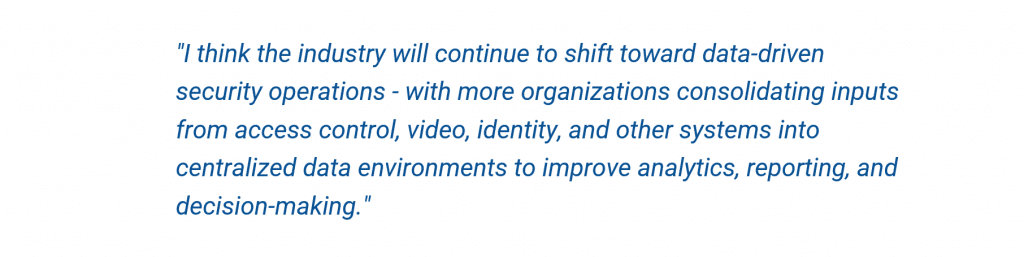 I also expect continued acceleration in cybersecurity and physical security convergence, especially as more security platforms move to cloud or hybrid architectures and as identity becomes the common thread across both domains.